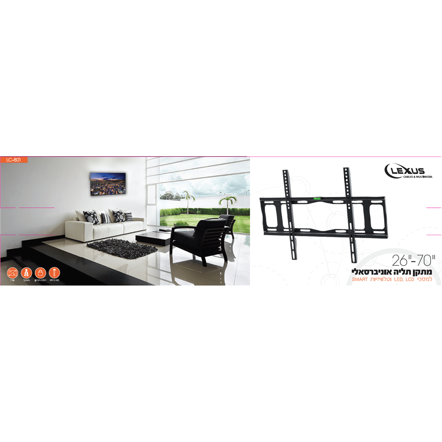 מתאים גם להתקנה על קירות גבס בשל פלטת המתכת הגדולה שעליה נתלה המסך