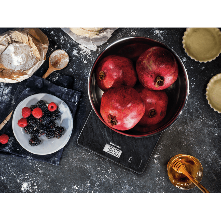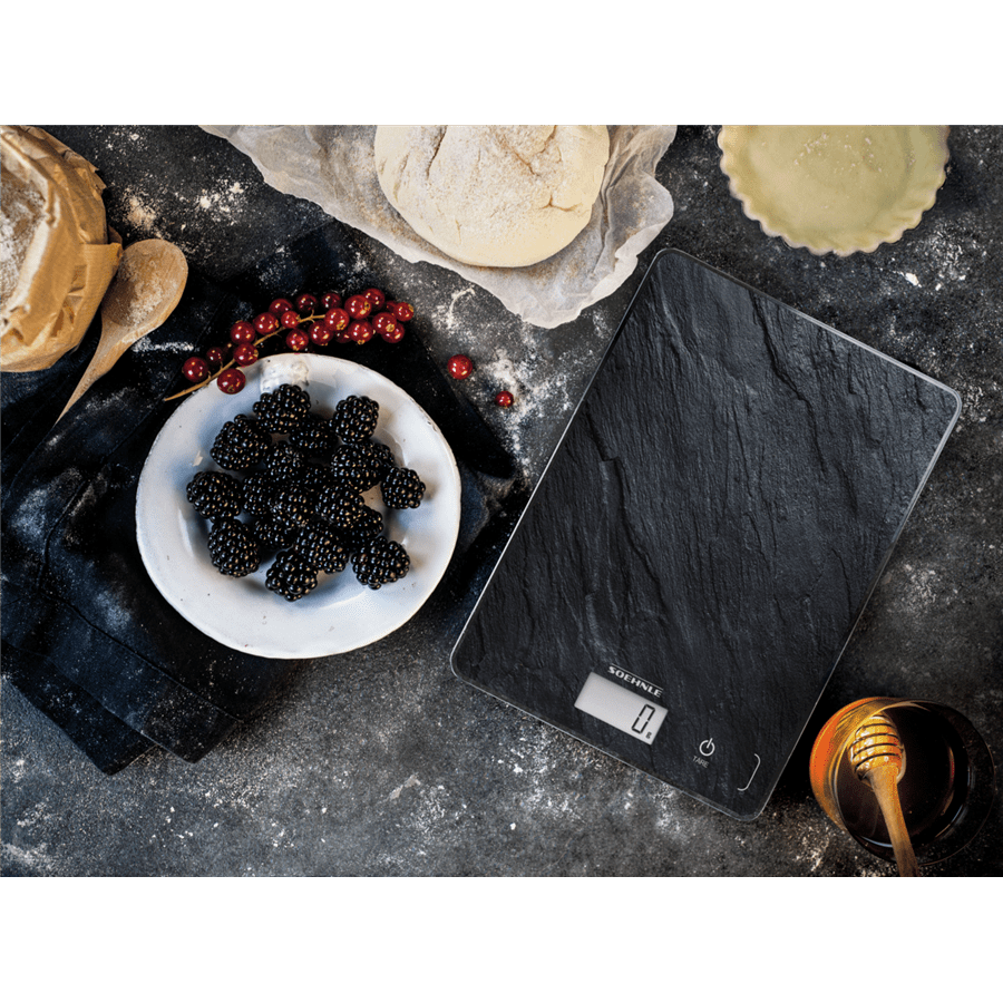 משקל מטבח בצבע שחור דמוי אבן יוקרתי 'KWD Page Compact 300 slate עיצוב דק , שקילה של עד 5 ק"ג, דיוק עד לרמת 1 גרם, מאפשר מדידה ב-G/LB, כולל סוללה לשימוש מידי, תצוגת LCD נוחה לקריאה, אפשר לתלות על קיר לאחסון נוח, אחריות 5 שנים. 20/15/1.3 ס"מ